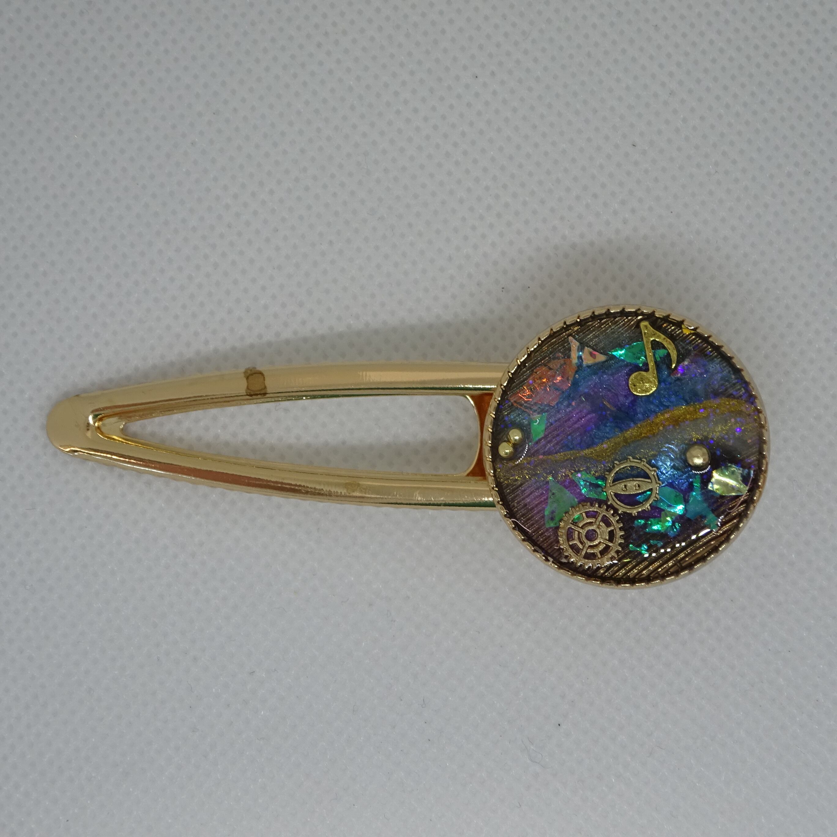 宇宙音色ヘアクリップ①[レジン/一点もの/ヘアクリップ/宇宙/音符/歯車/宇宙柄]