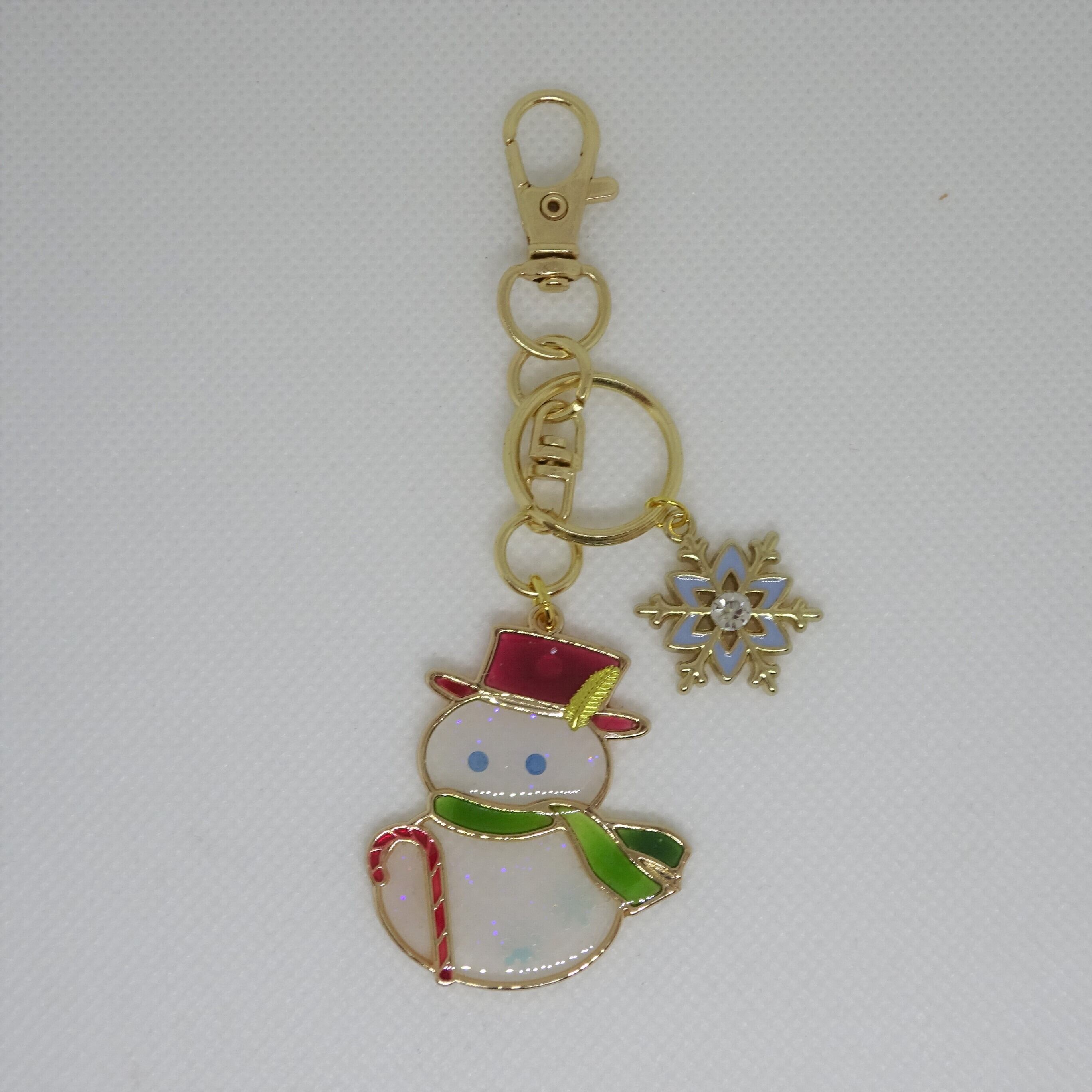 雪だるまキーホルダー①[レジン/一点もの/キーホルダー/雪だるま/スノーマン/羽根]