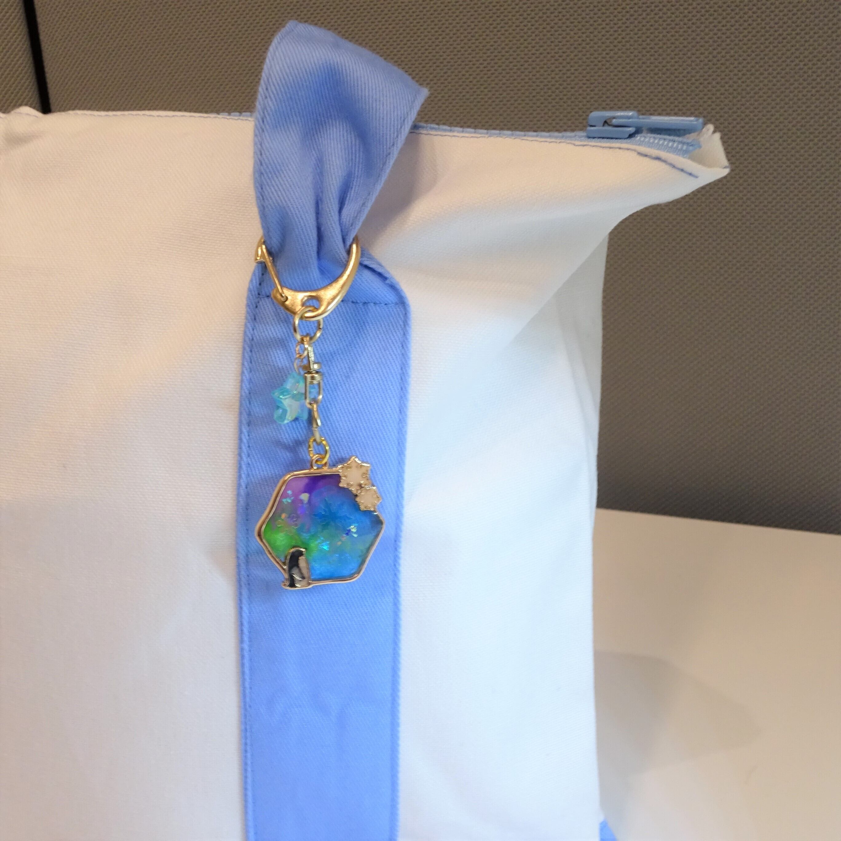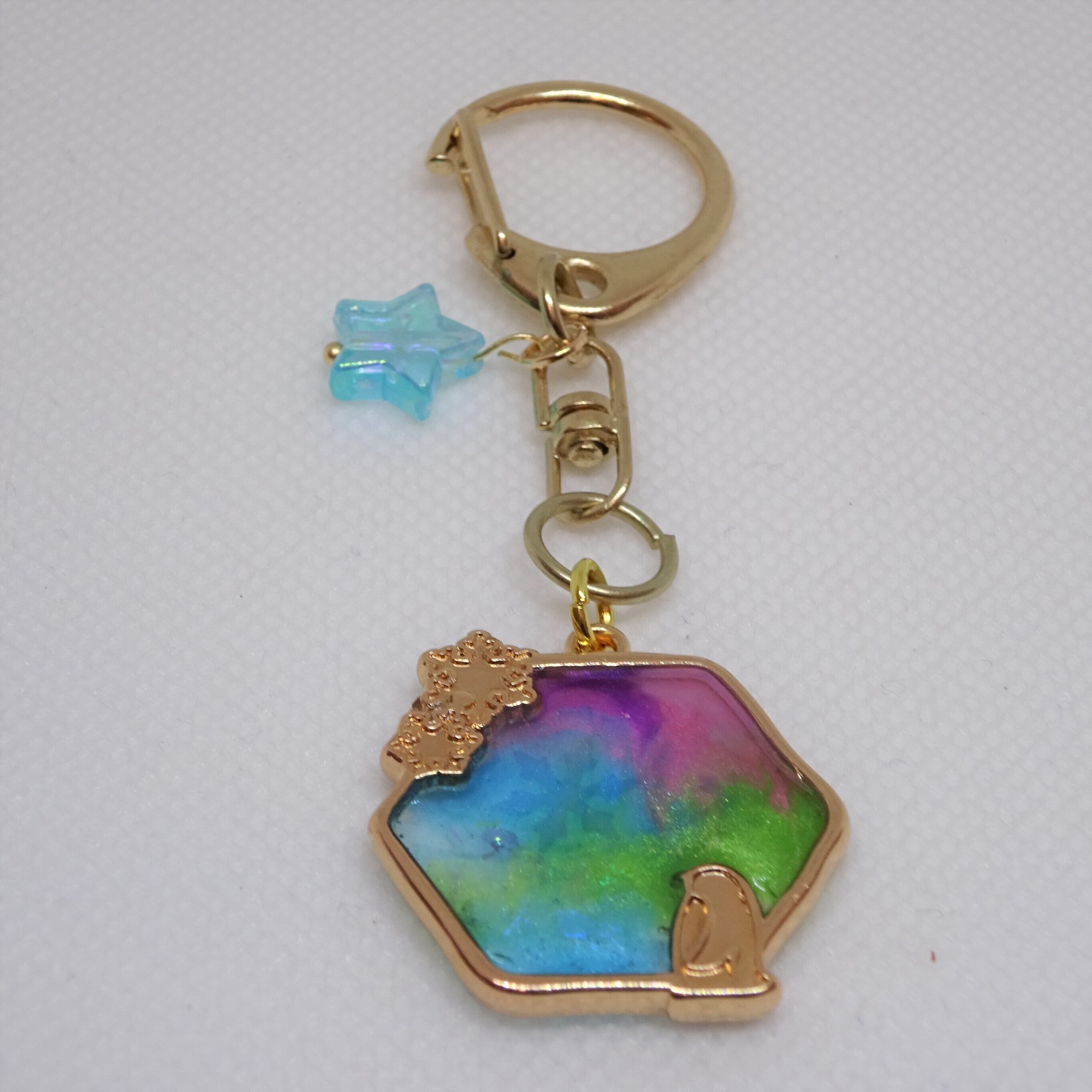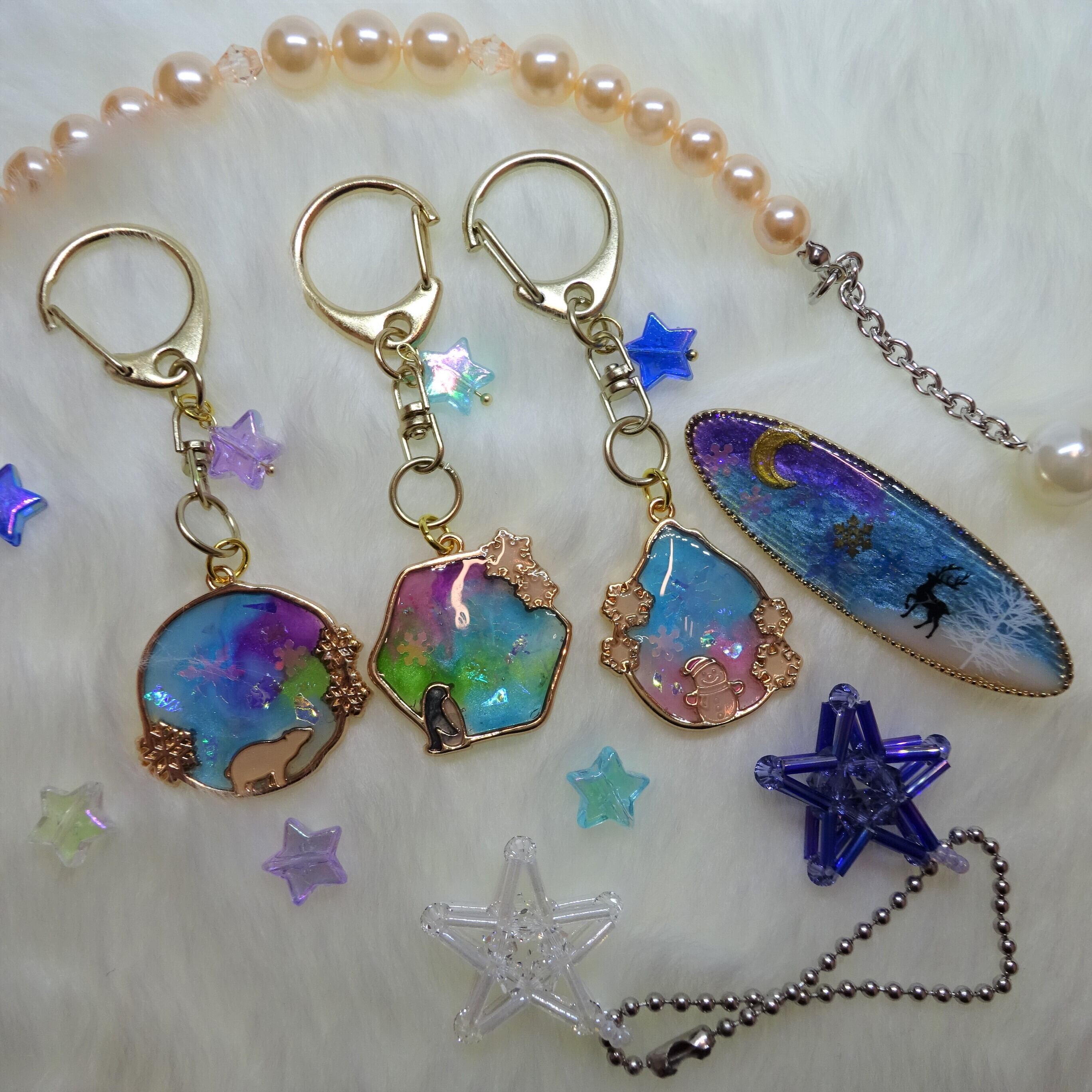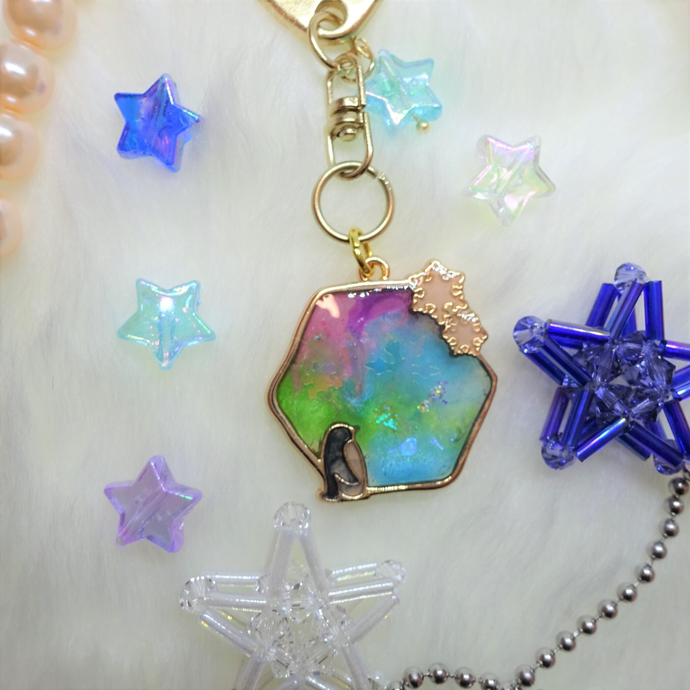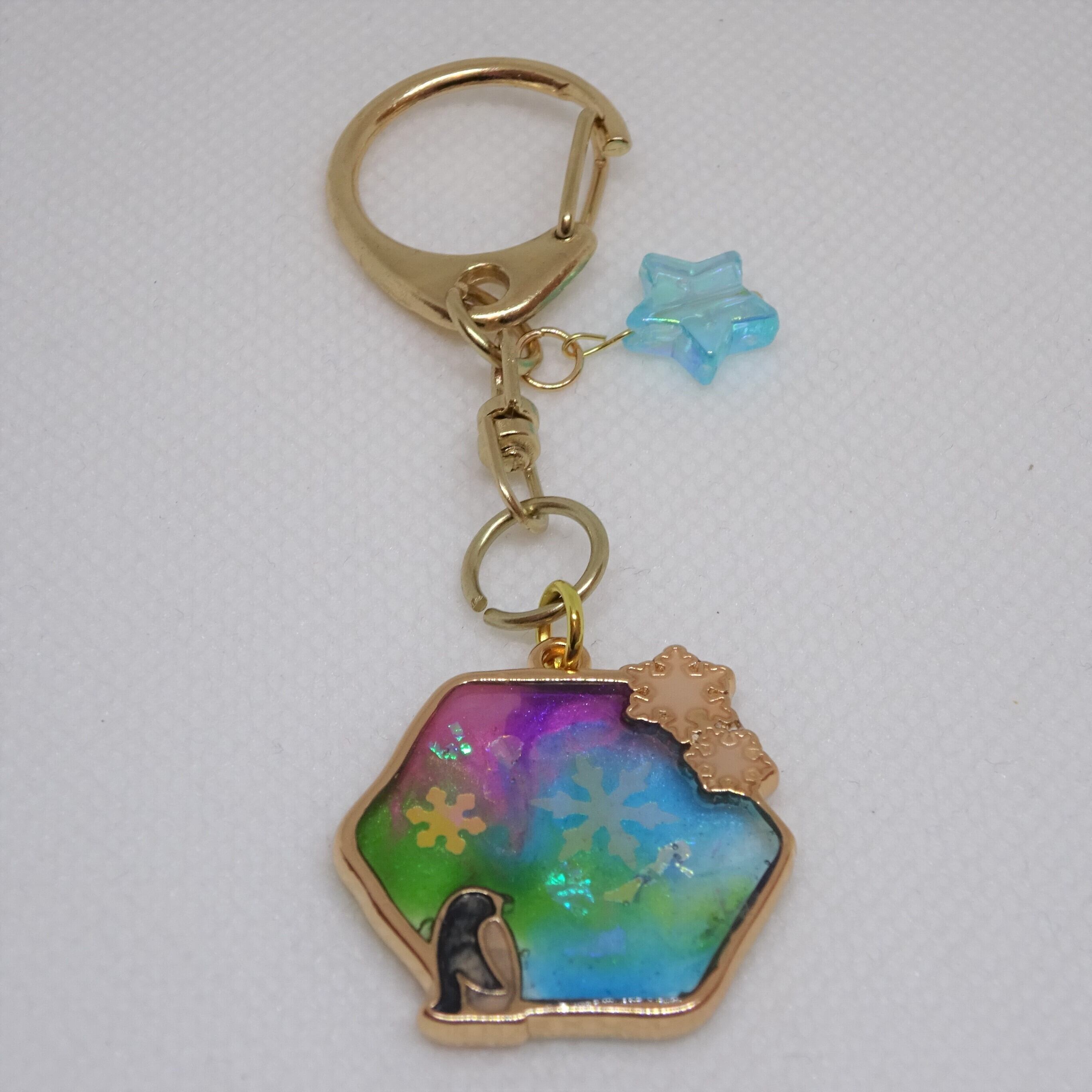 オーロラキーホルダー①[レジン/一点もの/キーホルダー/オーロラ/ペンギン]