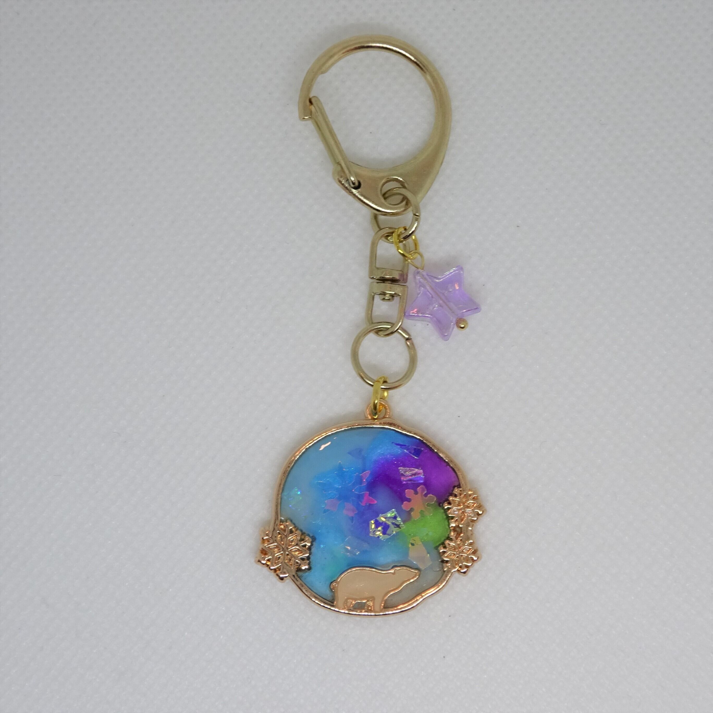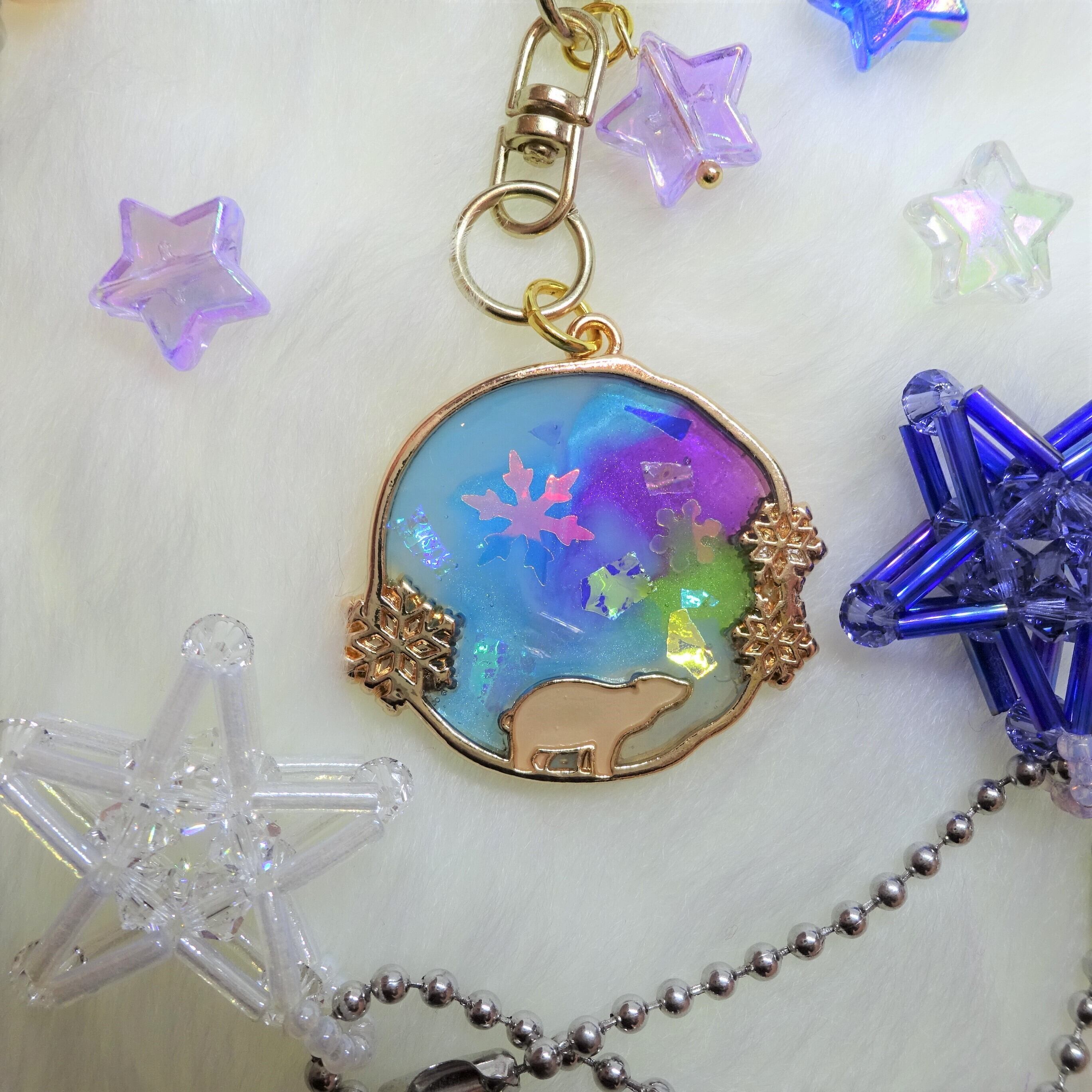 オーロラキーホルダー③[レジン/一点もの/キーホルダー/オーロラ/白くま]
