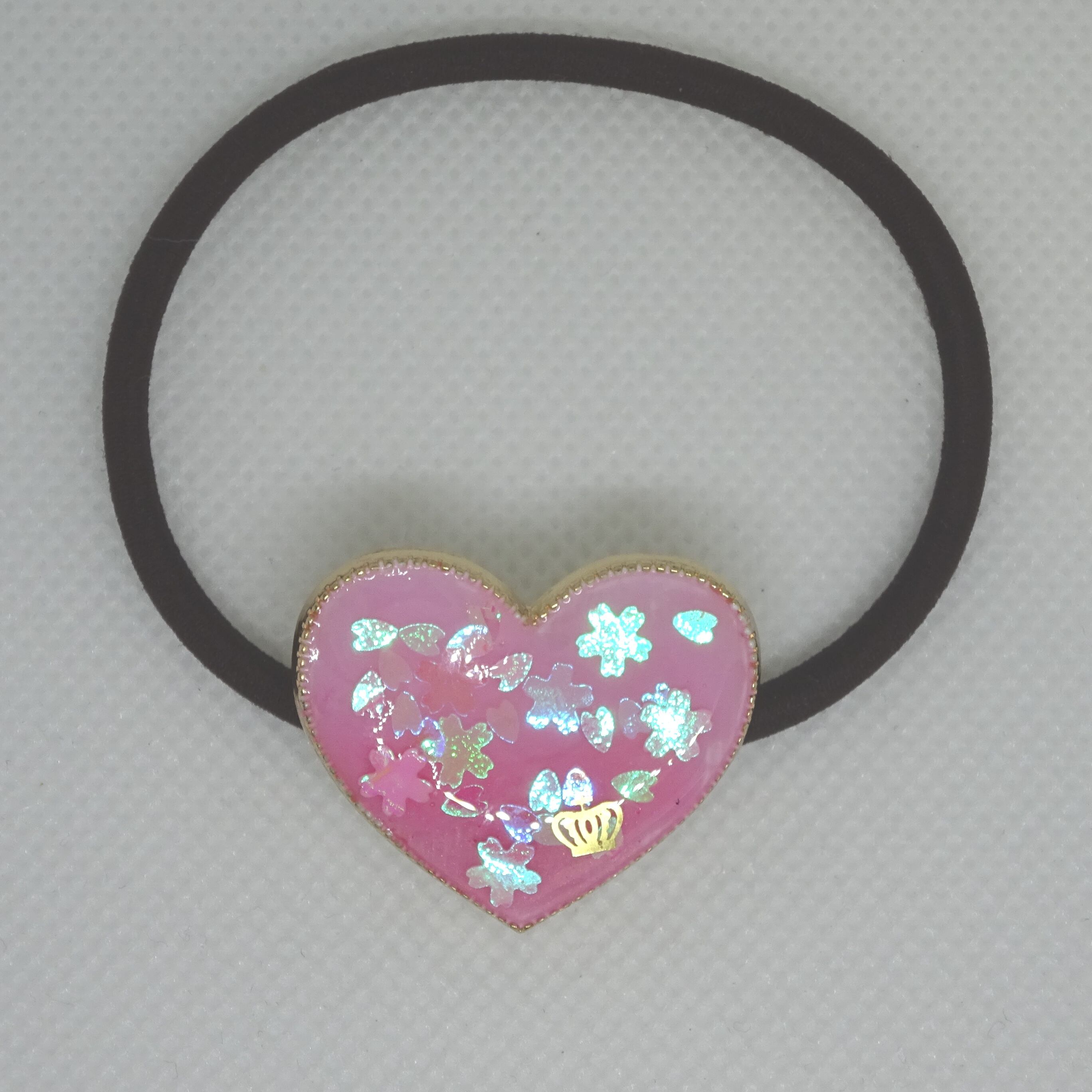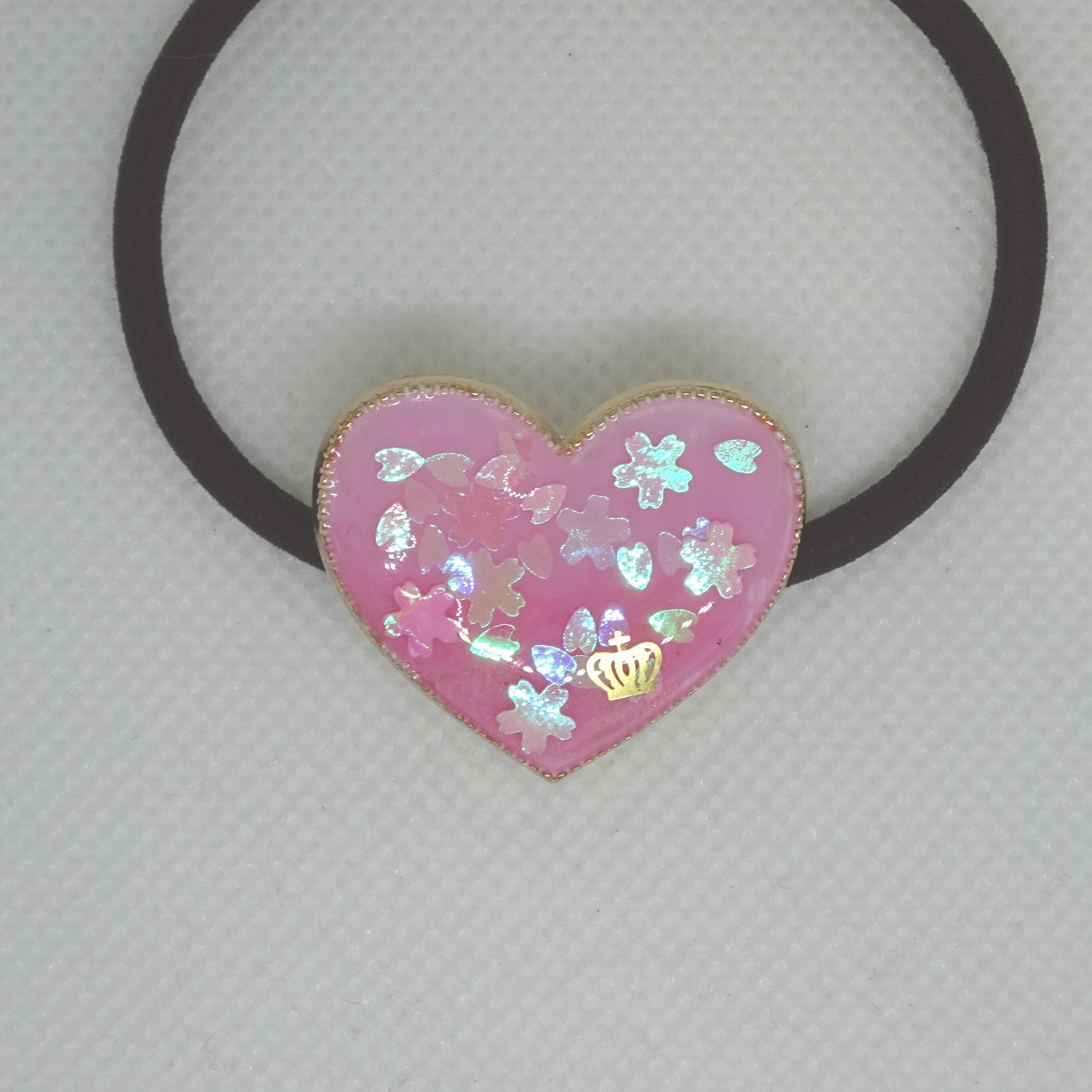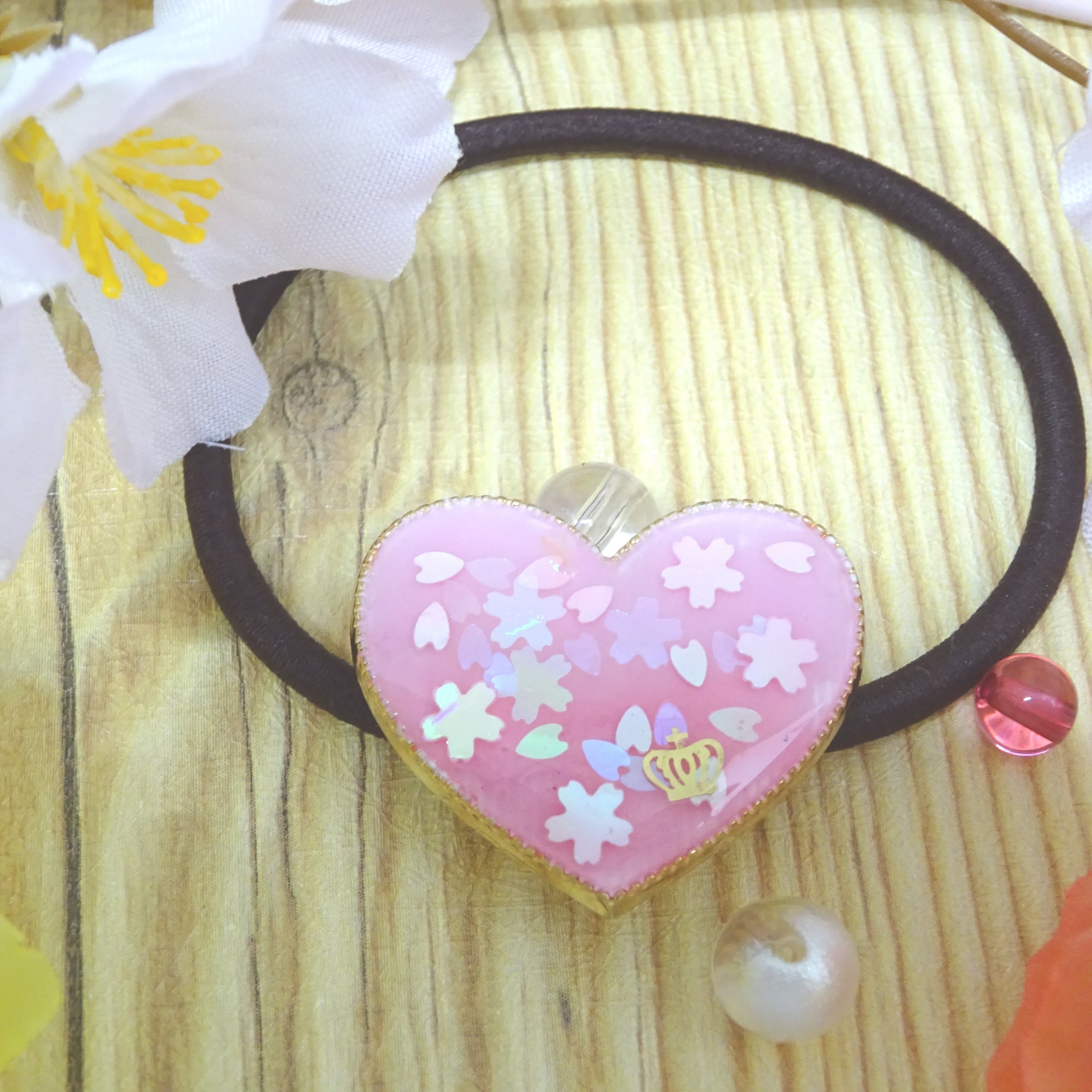 ハート桜ヘアゴム①[レジン/一点もの/ヘアゴム/桜/ハート/王冠/キラキラ]