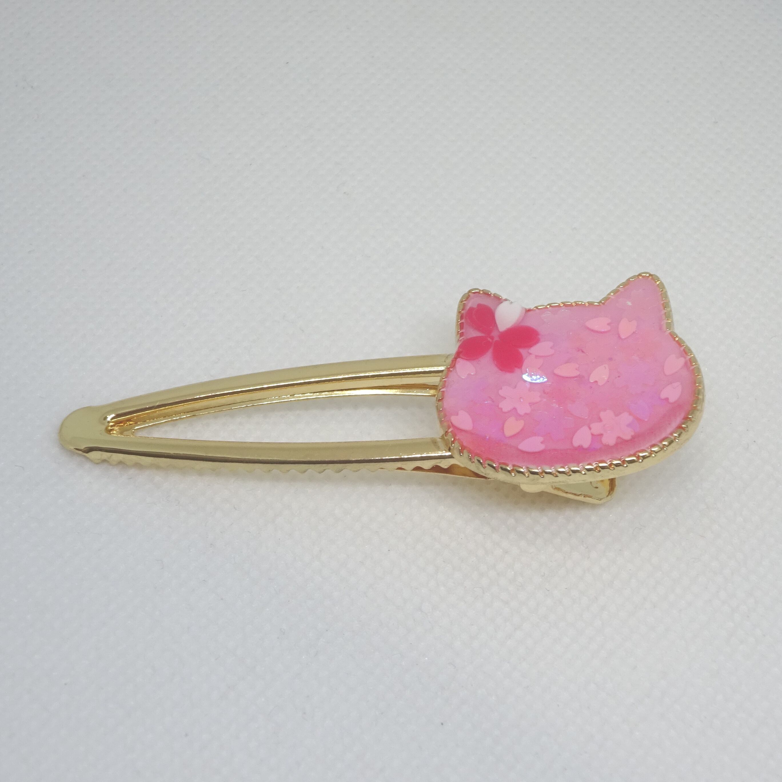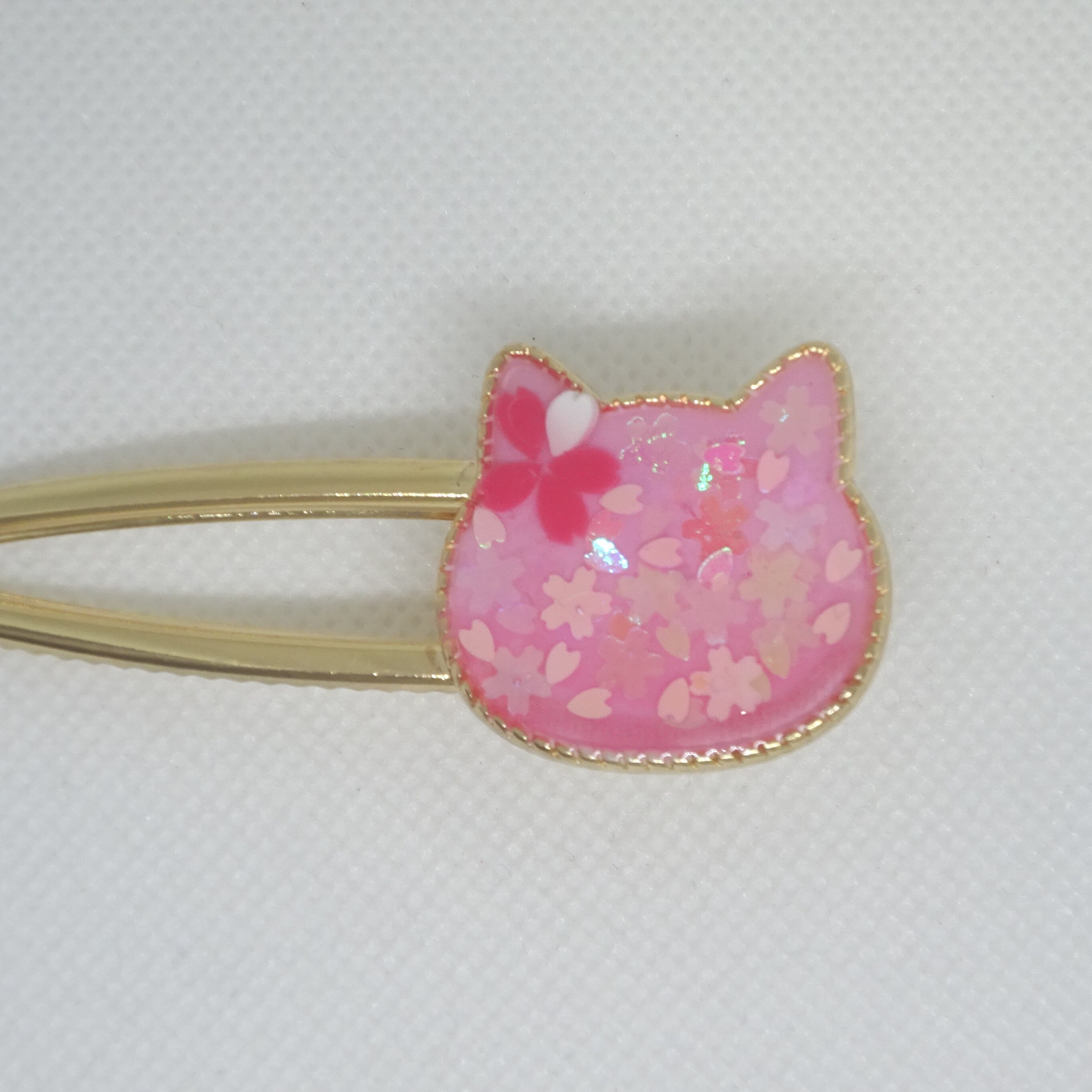 ハート桜ヘアクリップ[レジン/一点もの/ヘアクリップ/桜/ネコ/キラキラ]