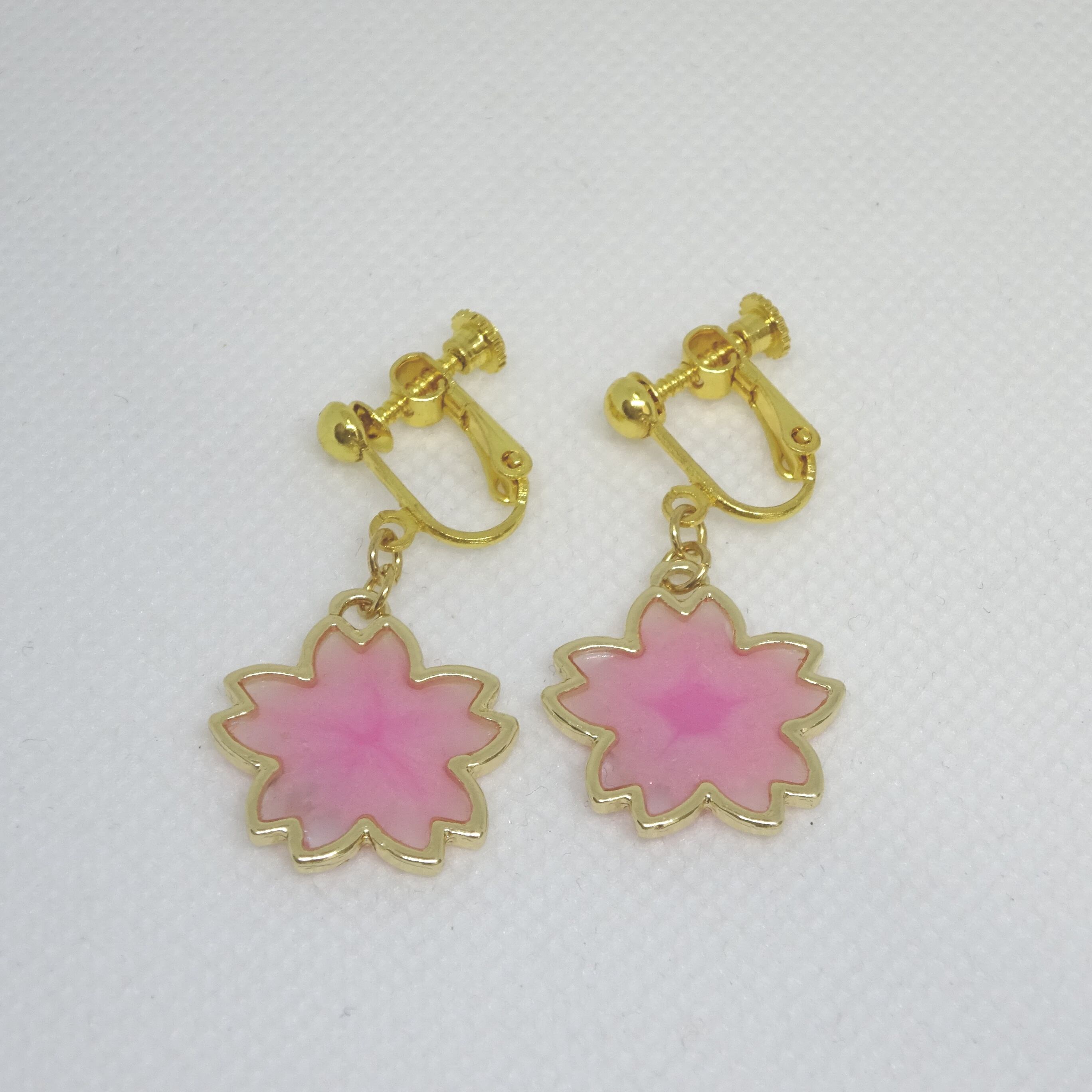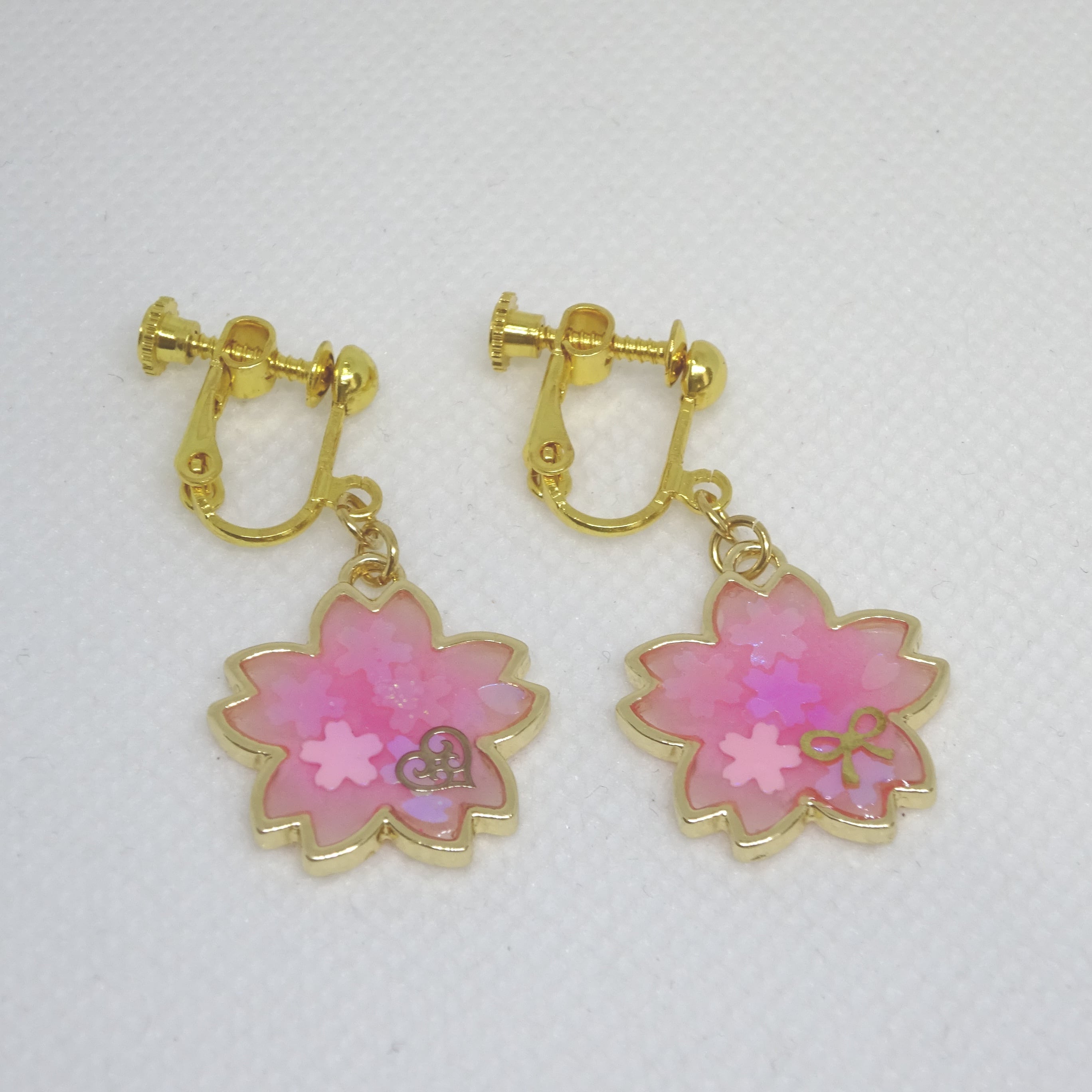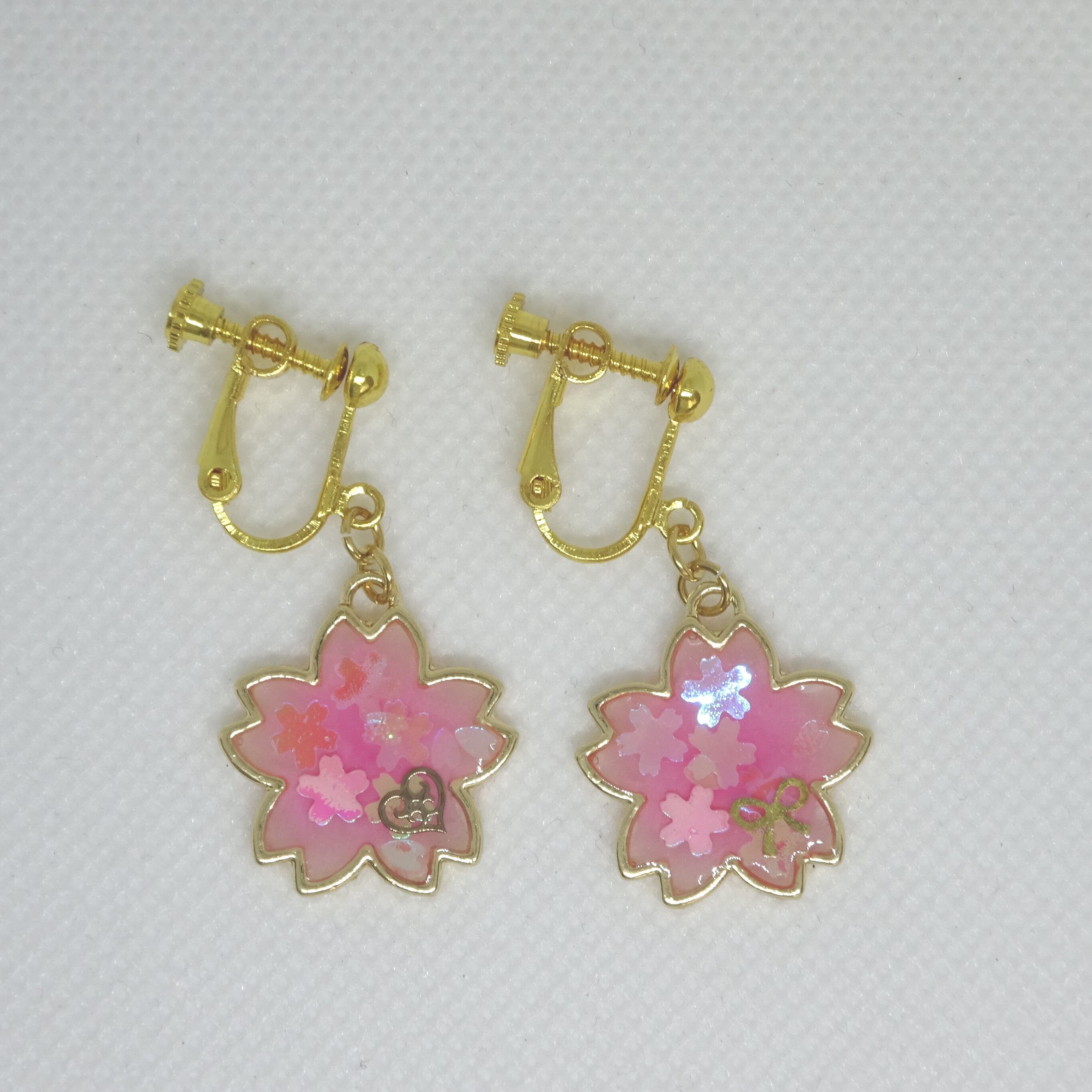 桜のイヤリング[レジン/一点もの/イヤリング/桜/キラキラ]