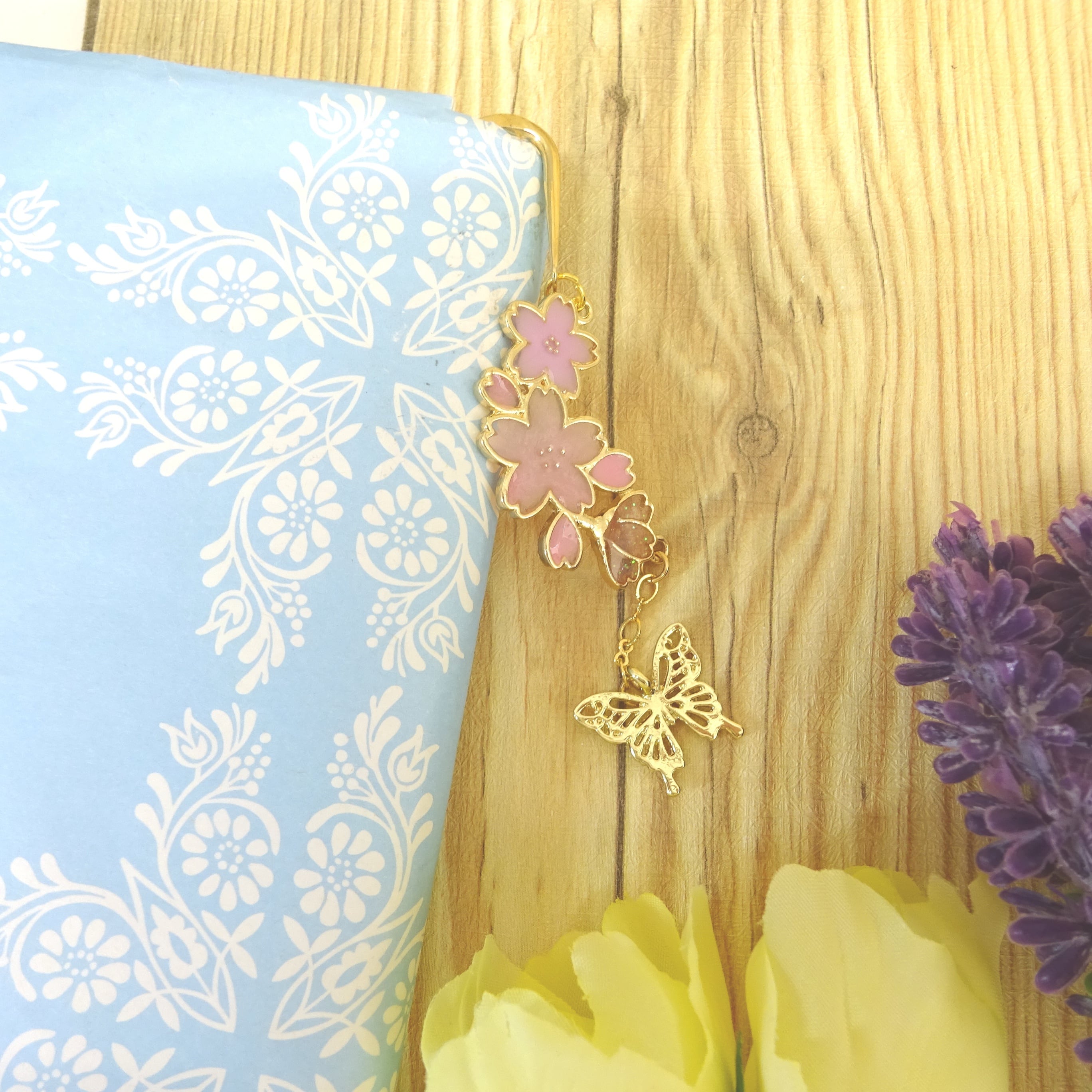 桜のしおり[レジン/一点もの/しおり/ブックマーク/桜/蝶]