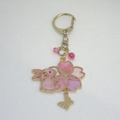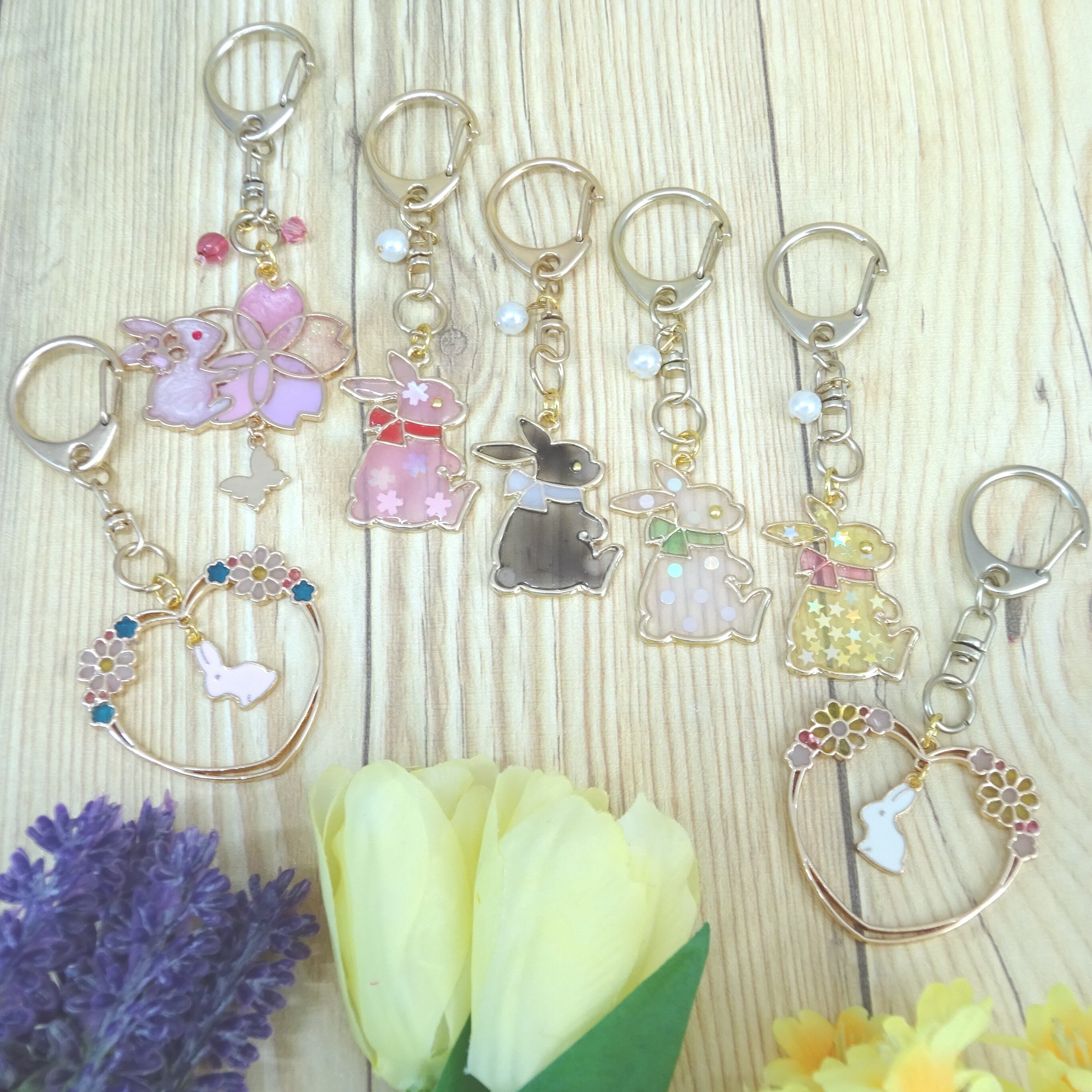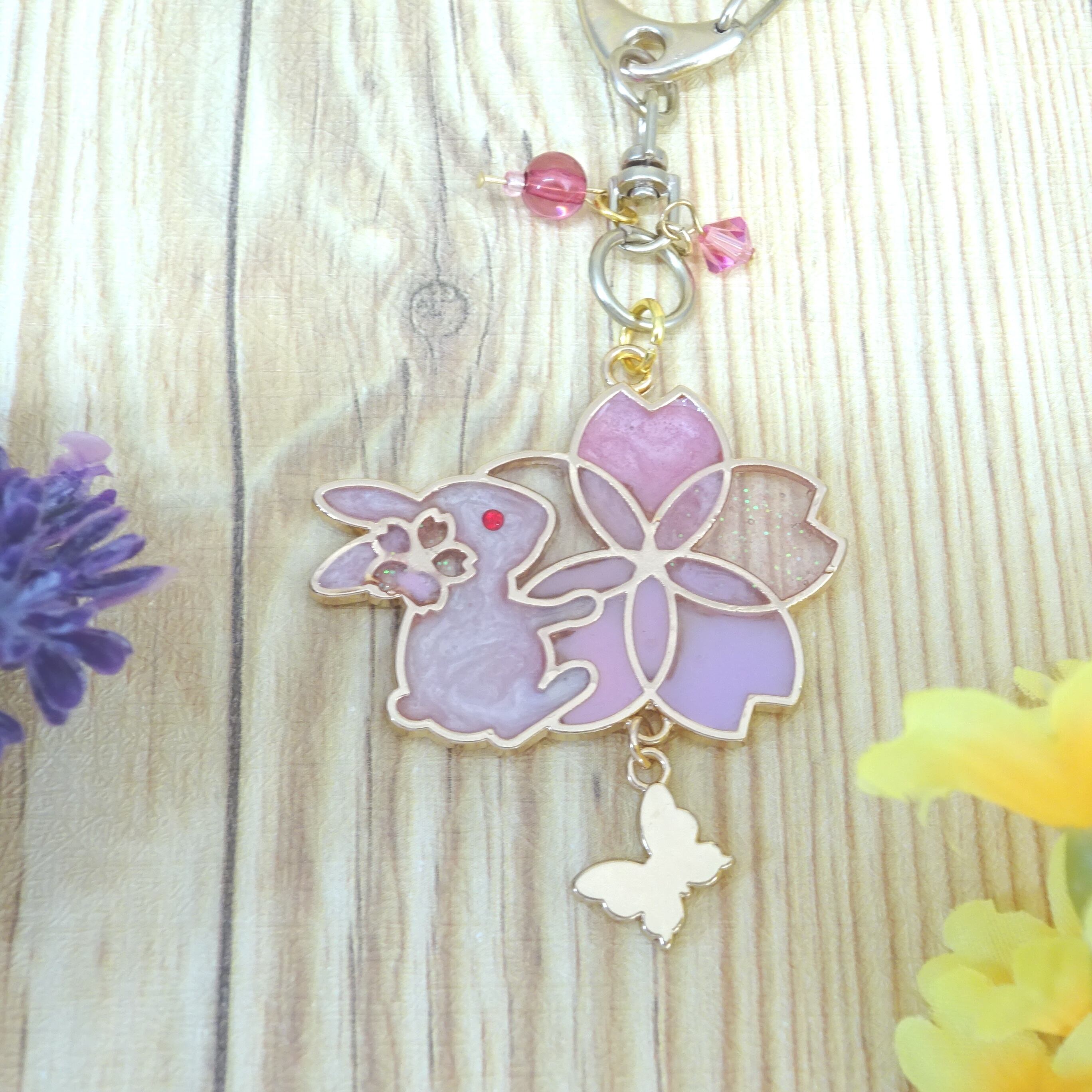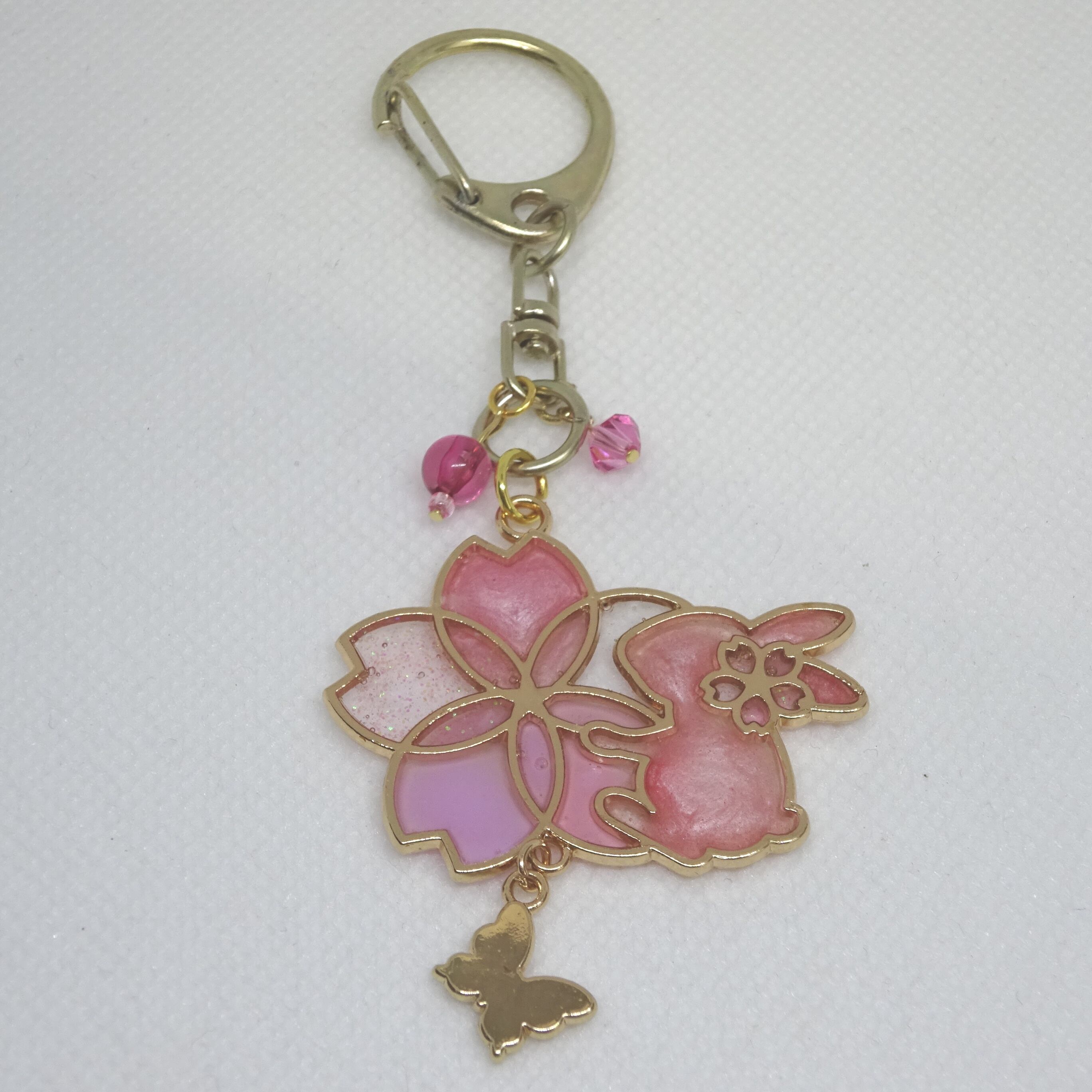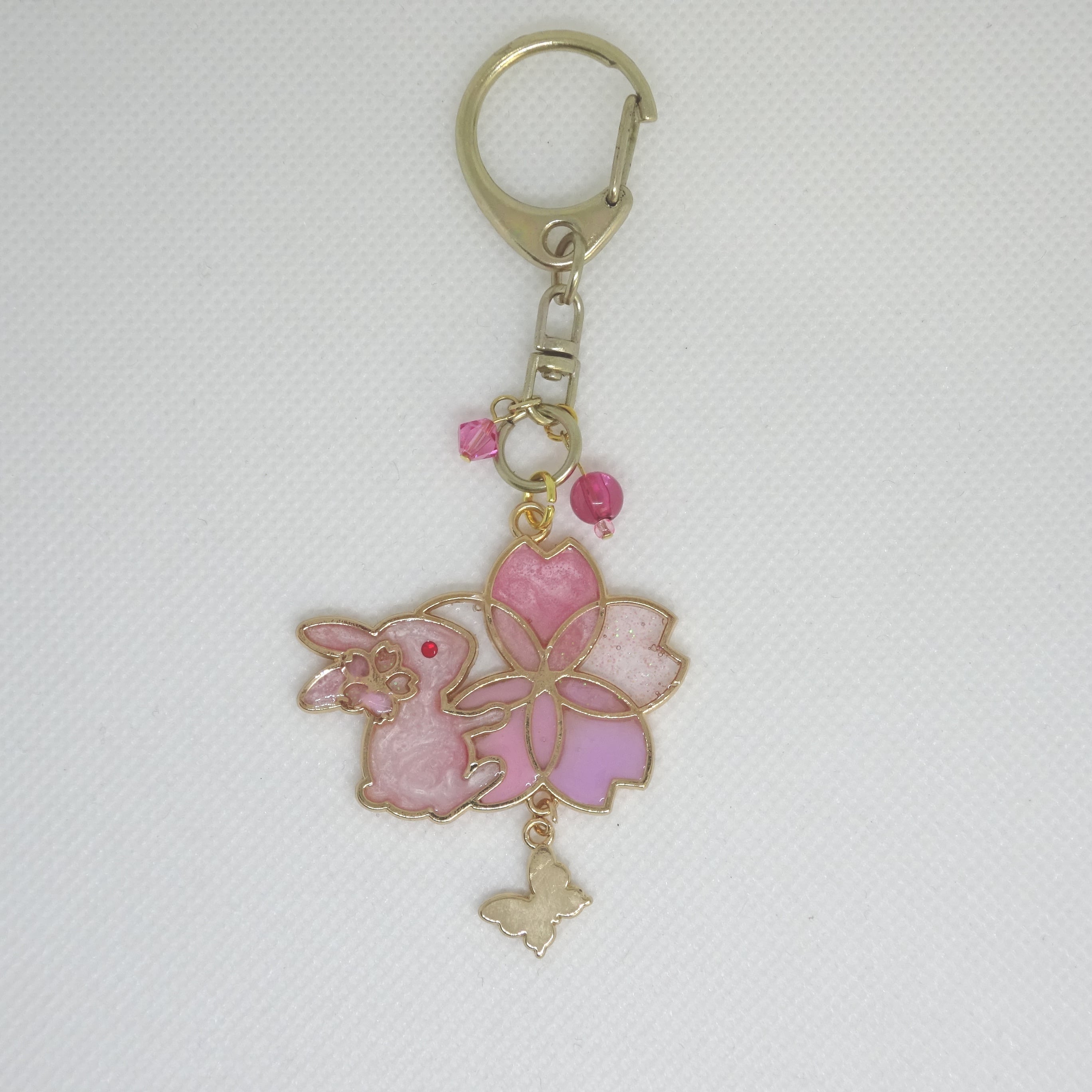 桜ウサギのキーホルダー[レジン/一点もの/キーホルダー/桜/ウサギ/蝶]