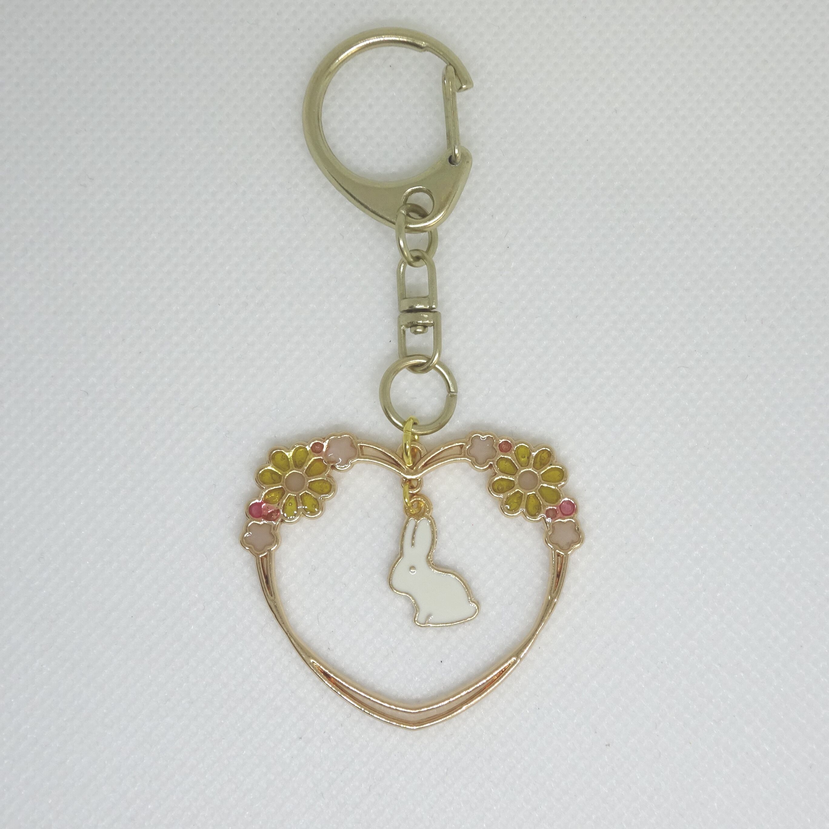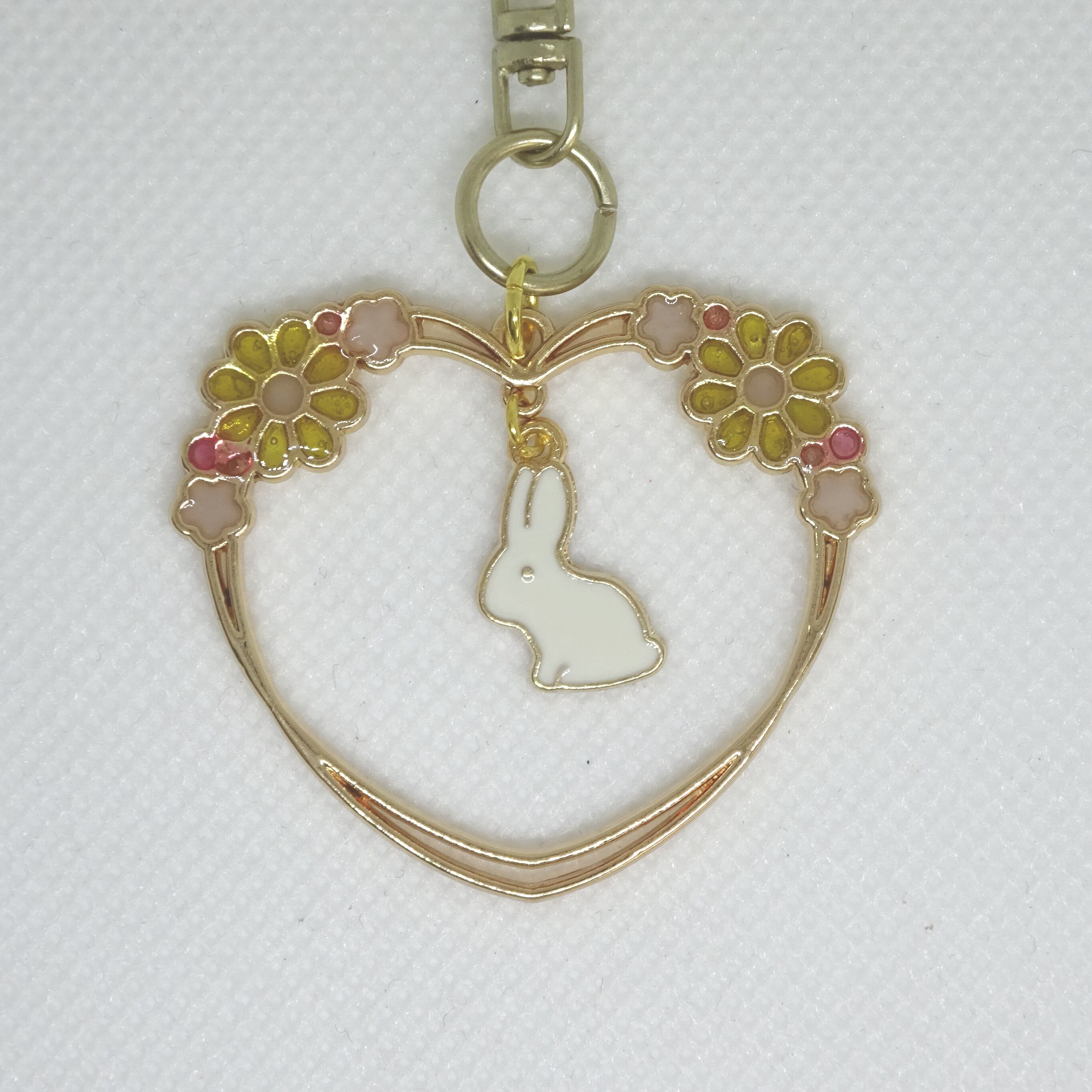 ウサギのキーホルダー⑤[レジン/一点もの/キーホルダー/ウサギ/白色/ハート]