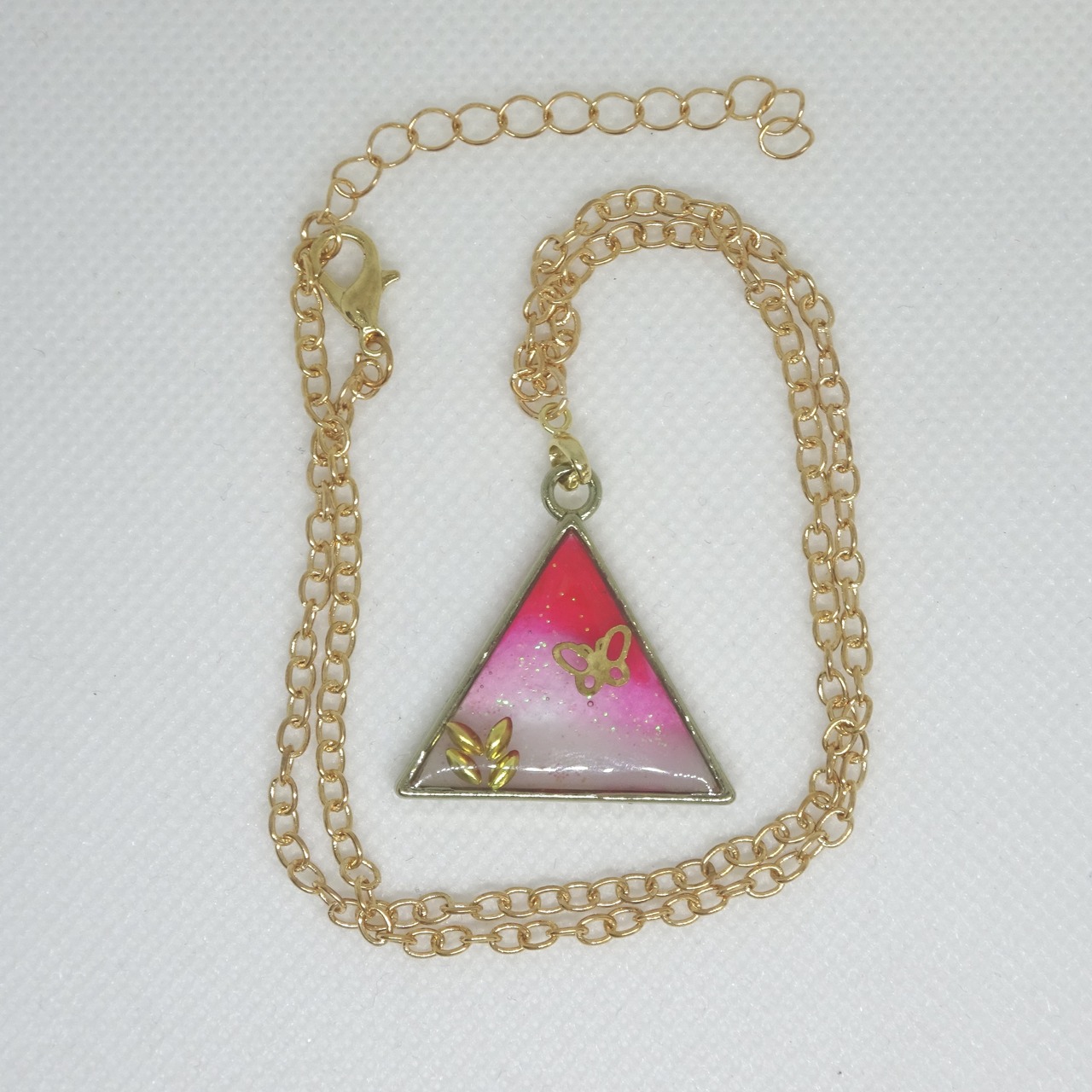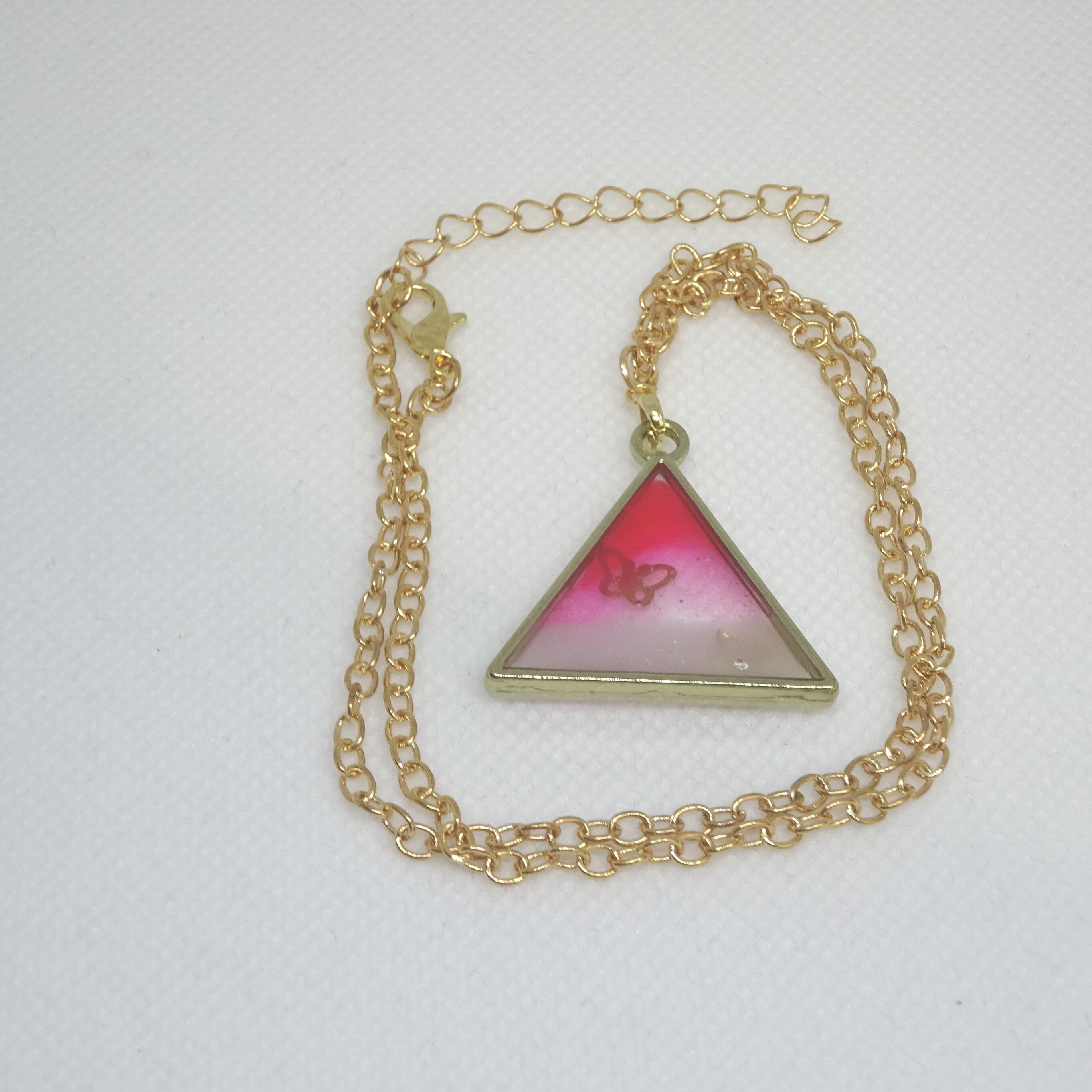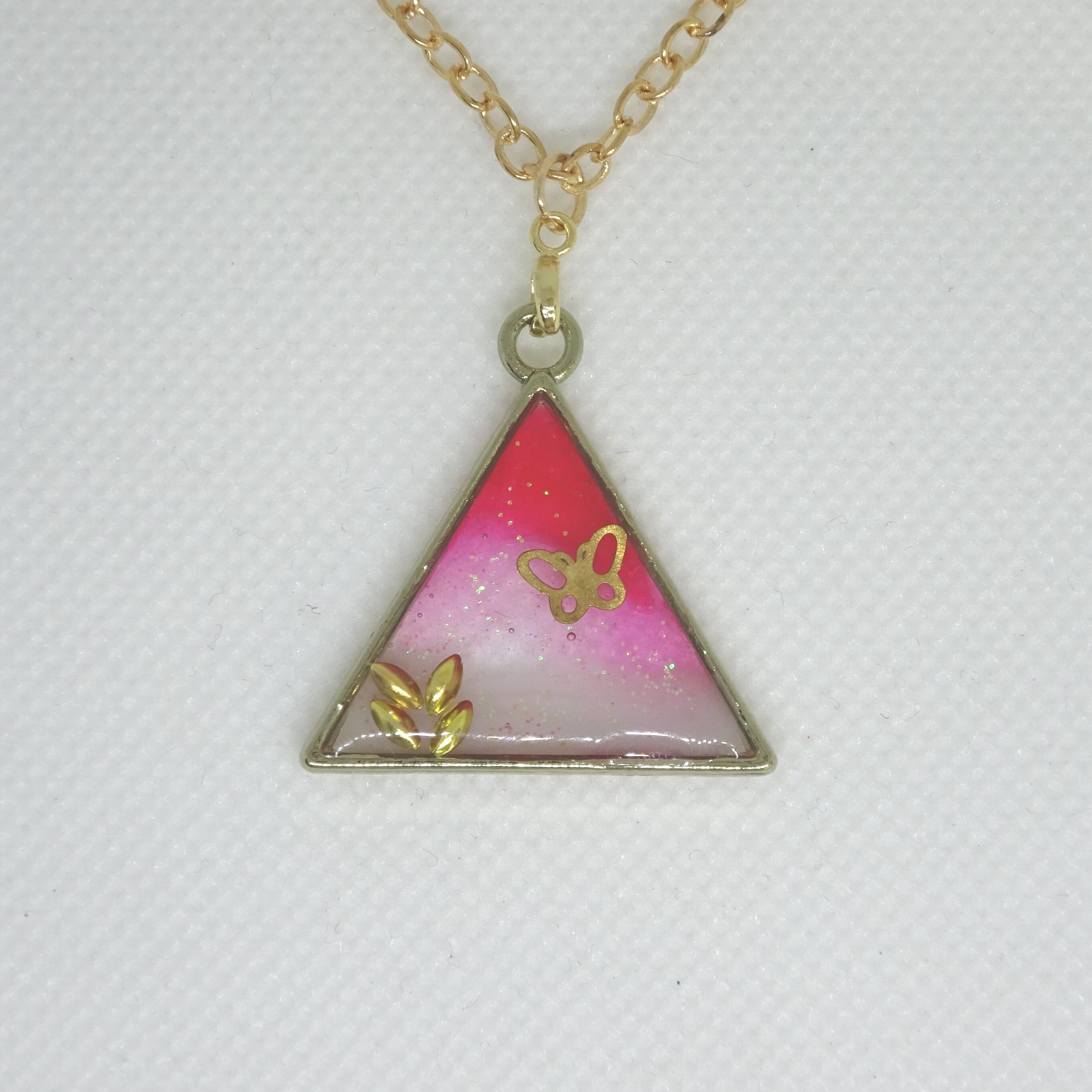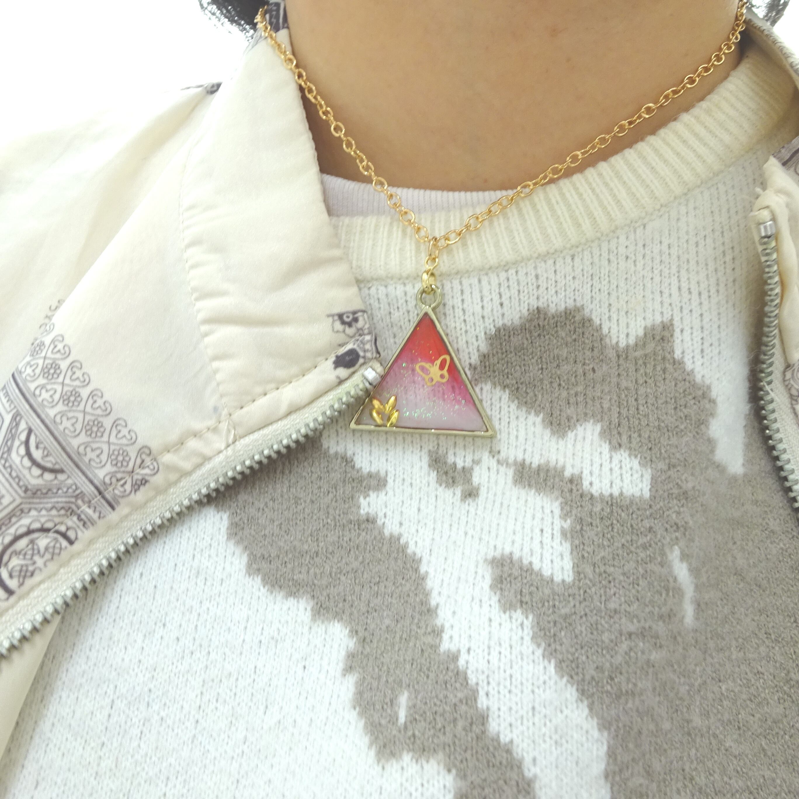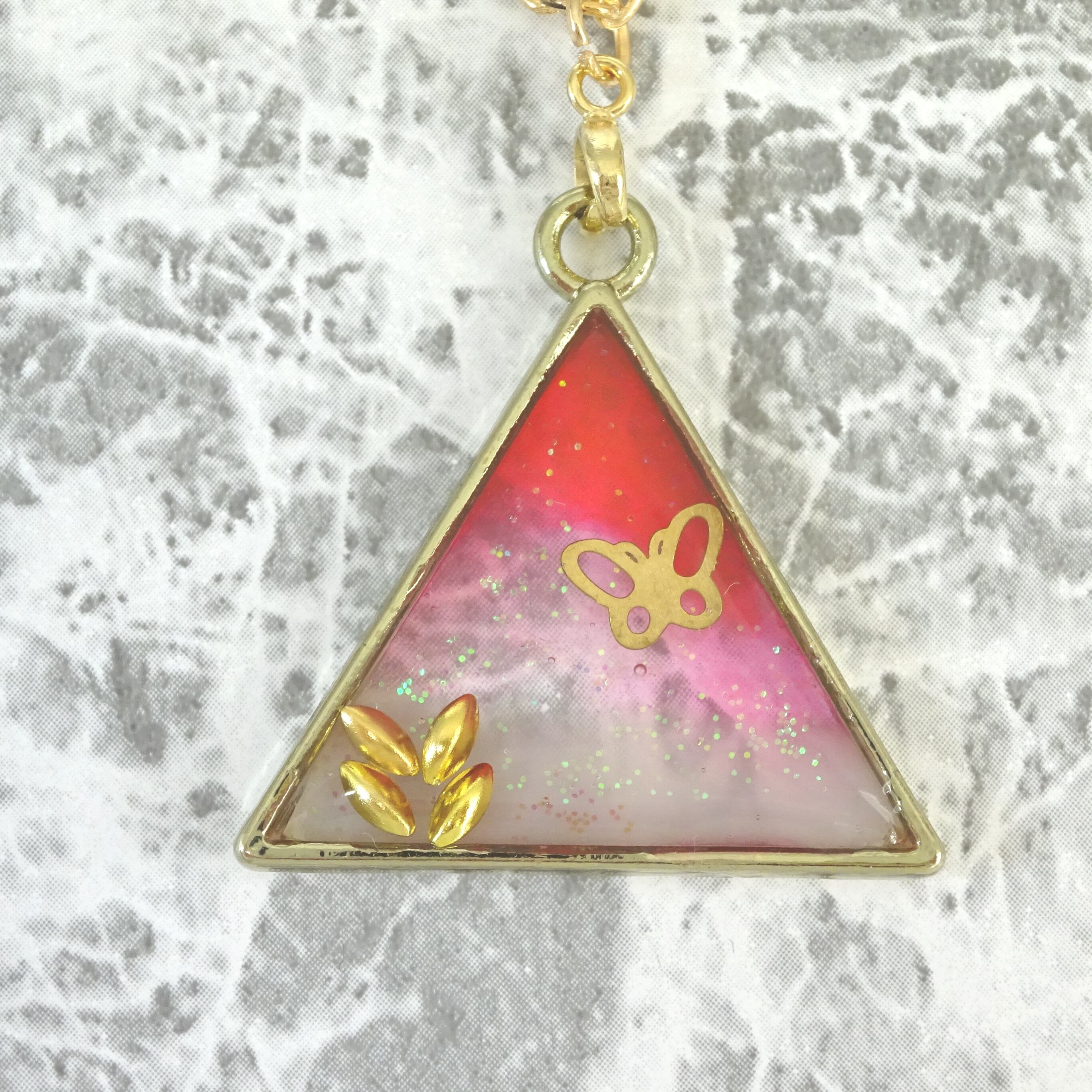 グラデーションネックレス②[レジン/一点もの/ネックレス/グラデーション/トライアングル/三角形/赤色/蝶/ラメ]