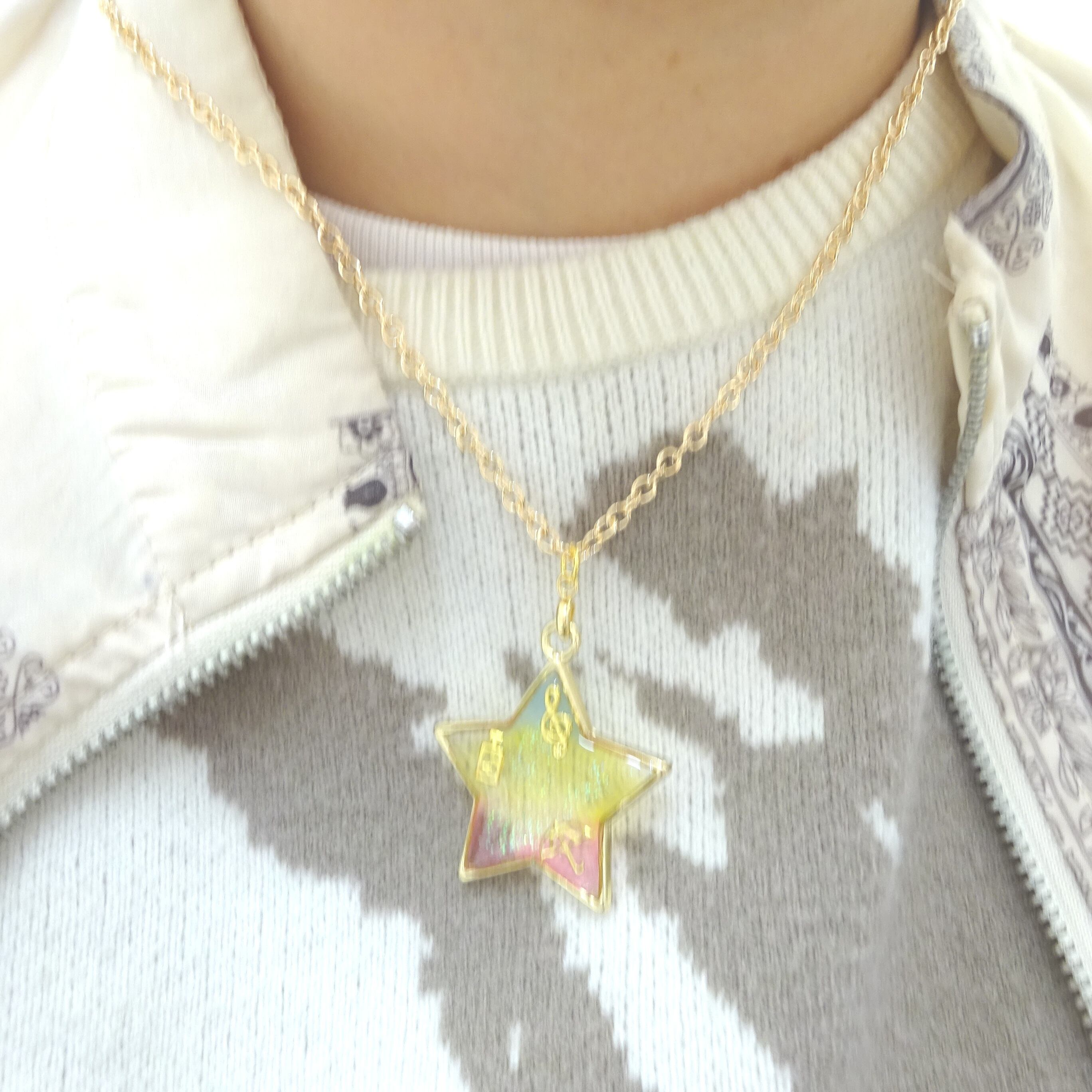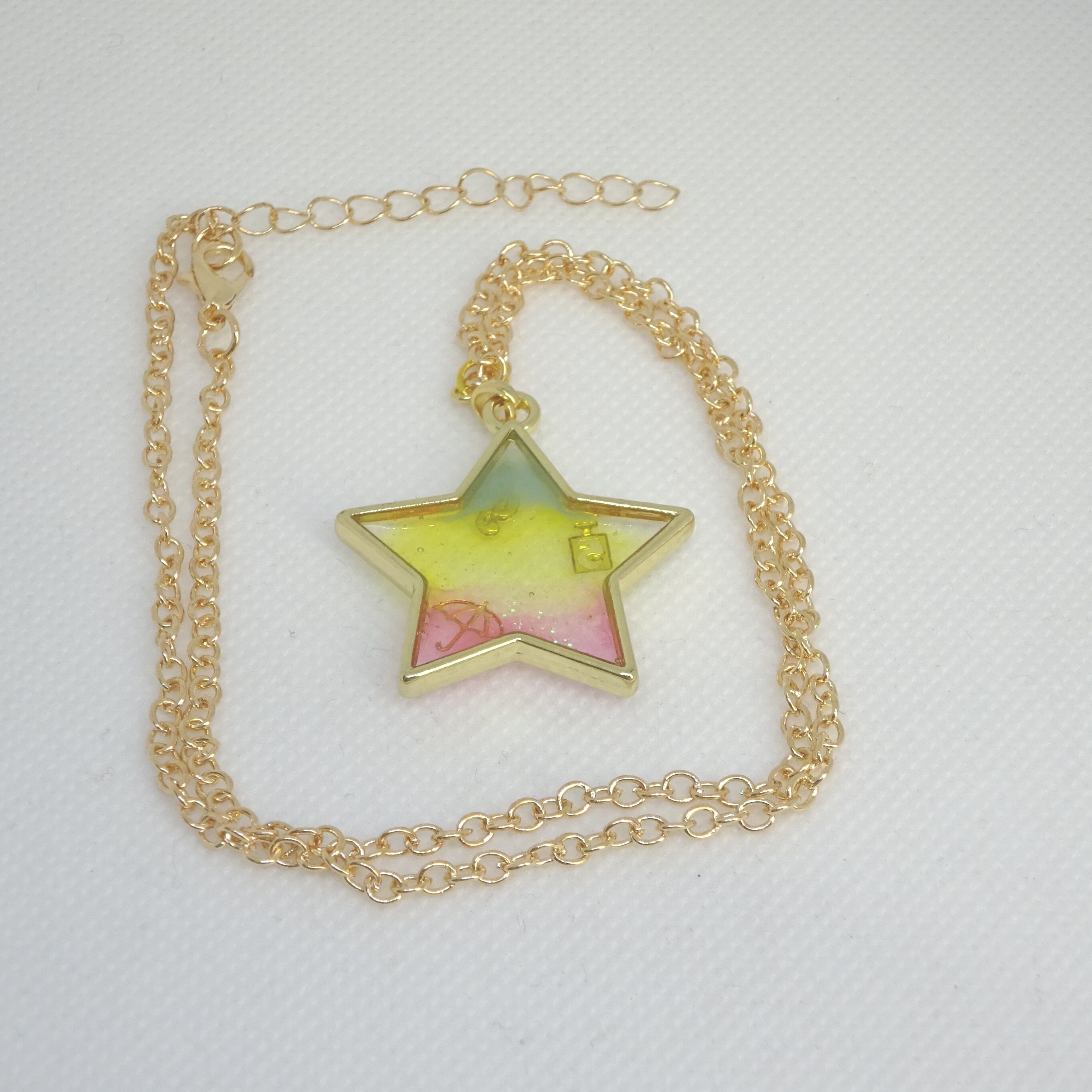 グラデーションネックレス⑥[レジン/一点もの/ネックレス/グラデーション/スター/星形/黄色/音符/傘/ラメ]